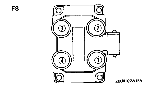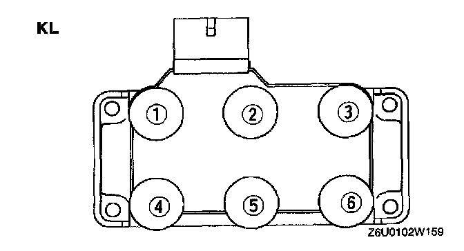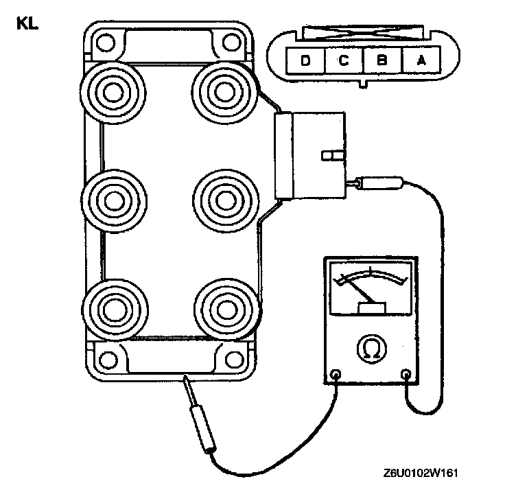 2. Measure the insulation resistance between terminal B (FS) or D (KL), and ignition coil case using an ohmmeter.