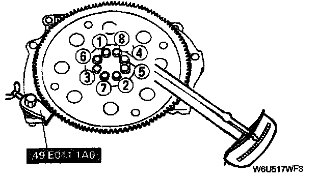2. Tighten the drive plate mounting bolts in two or three steps in the order shown.