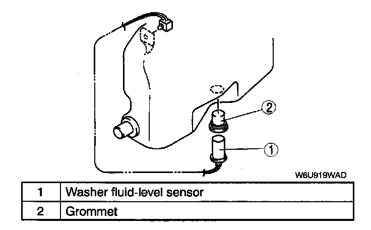 WASHER FLUID-LEVEL SENSOR REMOVAL/INSTALLATION1. Disconnect the negative battery cable.