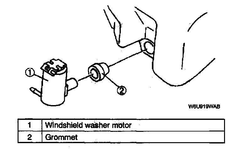 WINDSHIELD WASHER MOTOR REMOVAL/INSTALLATION1. Disconnect the negative battery cable.