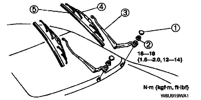 WINDSHIELD WIPER ARM AND BLADE REMOVAL/INSTALLATION1. Remove in the order indicated below.