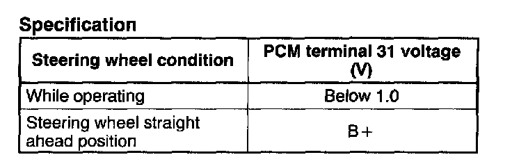 - If not as specified, replace the power steering pressure switch.