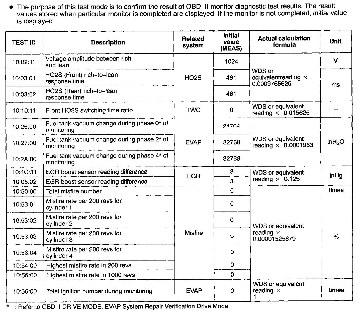Diagnostic Monitoring Test Results