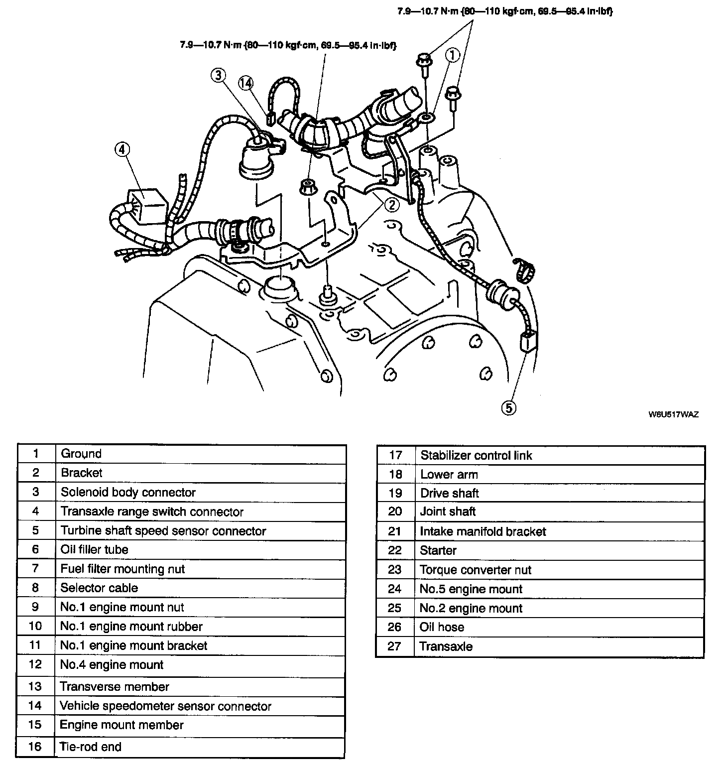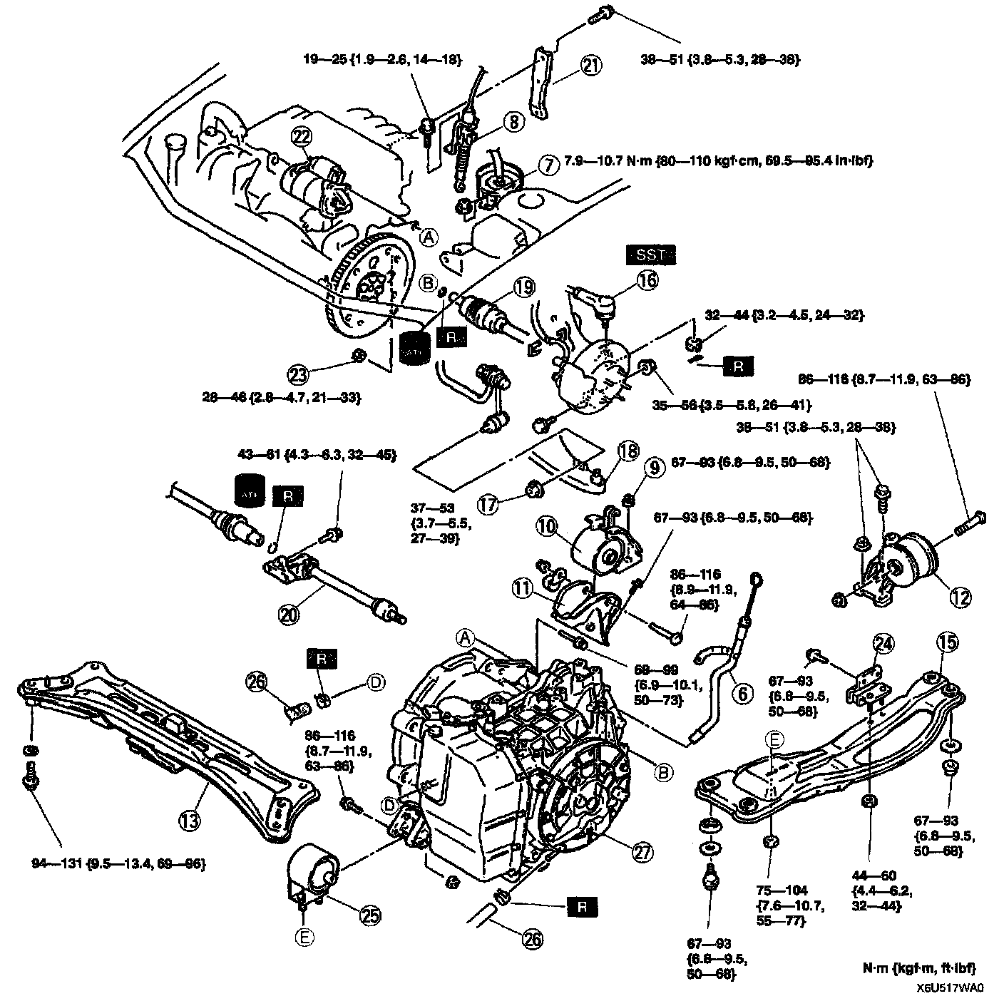 1. Loosen the SST (engine support) and lean the engine toward the transaxle