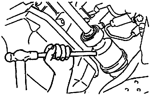 2. Disconnect the tie rod end from the knuckle using the SST.