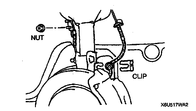 2. Remove the ABS wheel speed sensor harness mounting nuts.