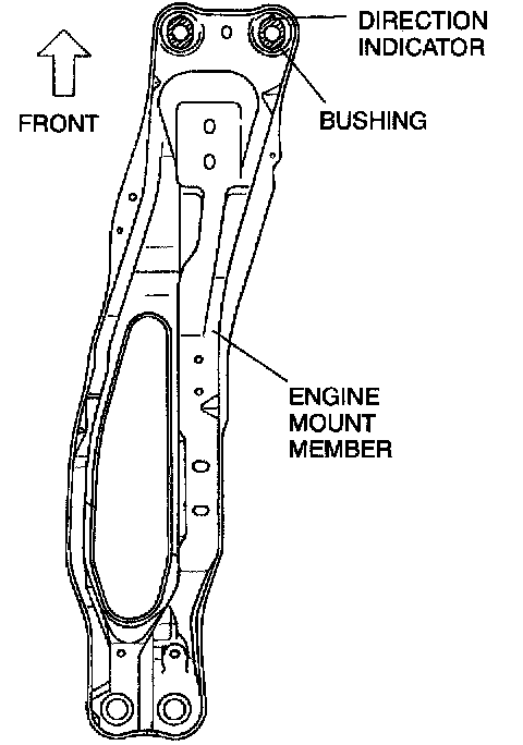 1. Position the direction indicator on engine mount member with bushings facing toward the front side, and install the bushings onto the engine mount member.