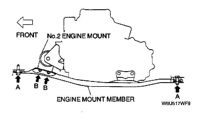 2. To install the engine mount member, put the No.2 engine mount stud bolts through the engine mount member installation holes.