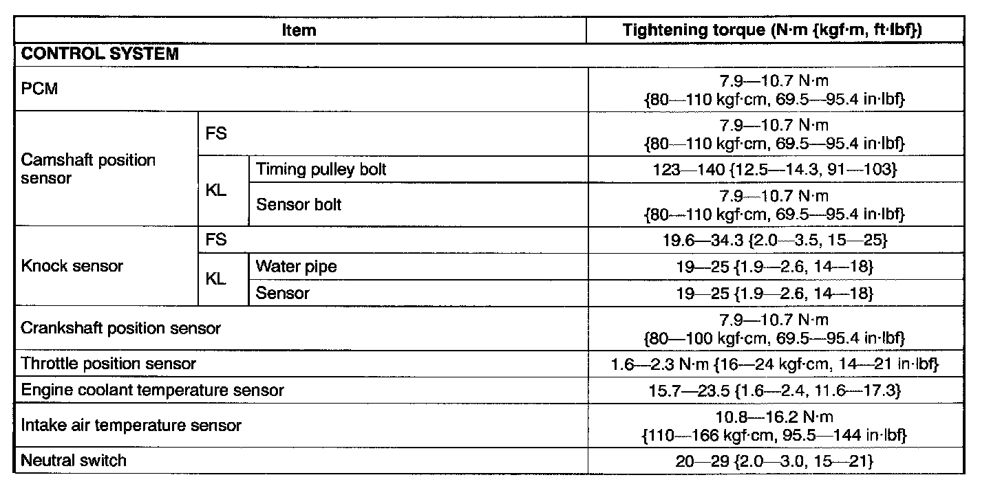Engine Tightening Torque - Control System: