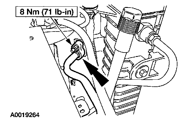 1. Disconnect the compressor manifold and tube assembly from the receiver/drier. Refer to the Spring Lock Coupling Disconnect and Connect general procedure in See SPRING LOCK COUPLING.