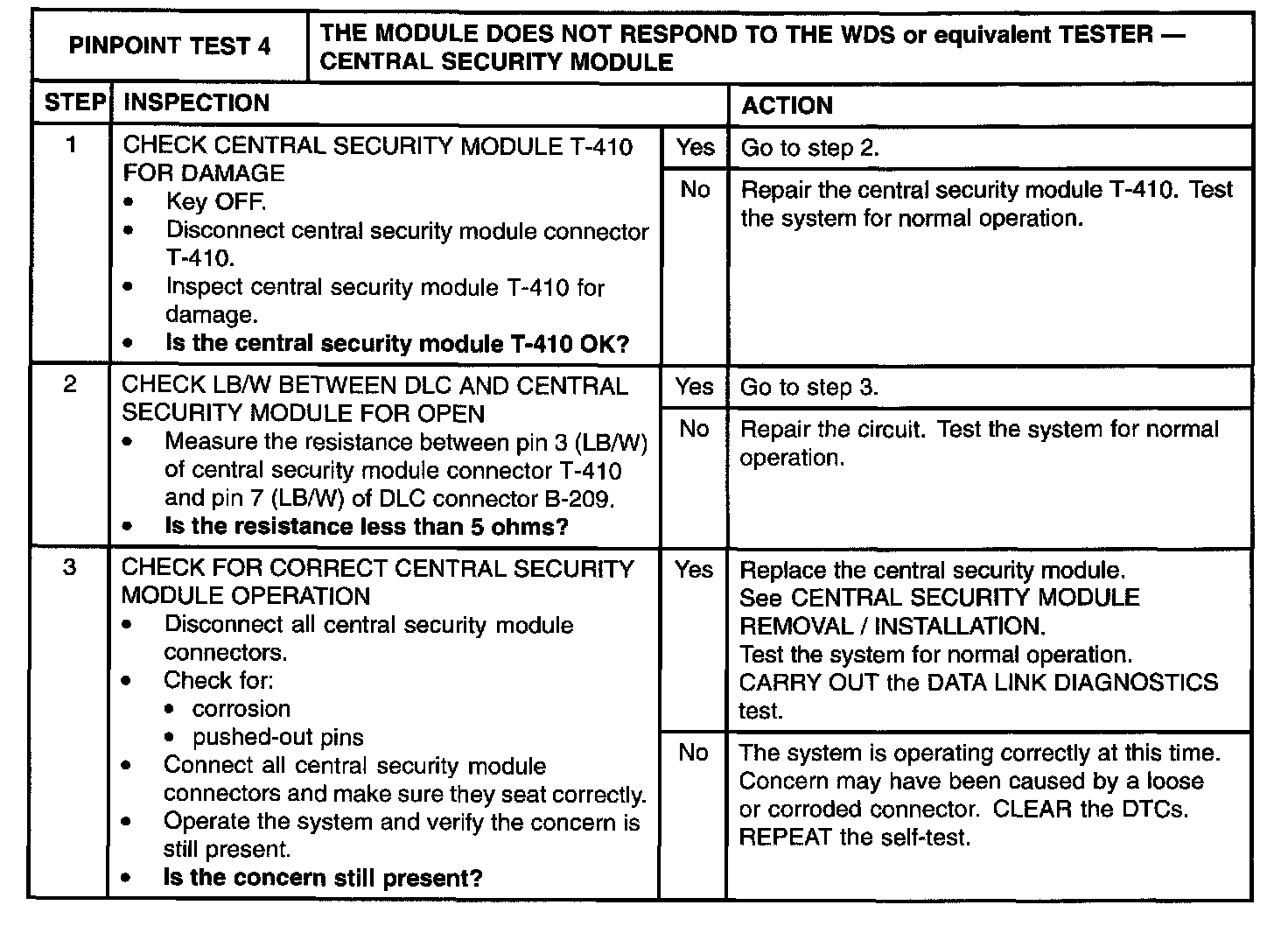 4. Module Wont Respond to WDS Tester - Central Security Module