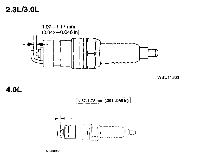 NOTE: All B-Series with 3.0 L or 4.0 L engines have factory installed, color-coded spark plugs. These spark plugs are not interchangeable between the right and left bank.