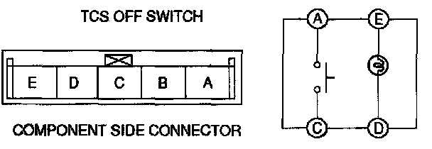 2. Inspect for continuity between the TCS OFF switch terminals using an ohmmeter.