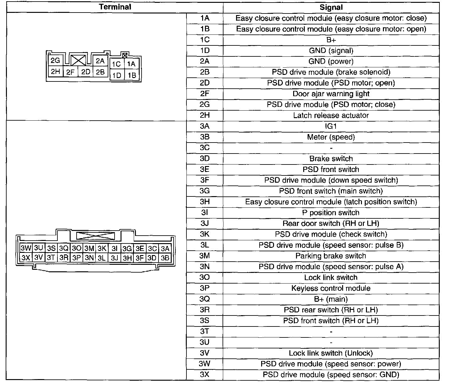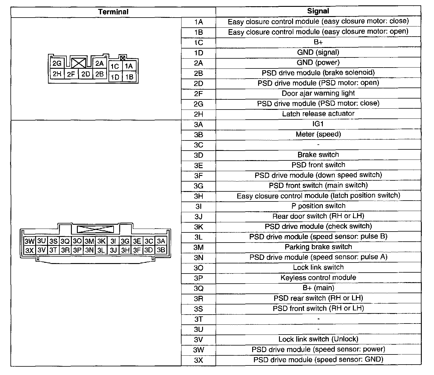 Power Sliding Door (PSD) System Terminal Layout And Signals: