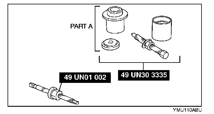 3. Assemble the front oil seal using part A of the SST (49 UN30 3335) and the SST (49 UN01 002) in the following order.