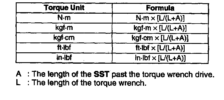 - When using a torque wrench-SST or equivalent combination, the written torque must be recalculated due to the extra length that the SST or equivalent adds to the torque wrench. Recalculate the torque by using the following formulas. Choose the formula that applies to you.