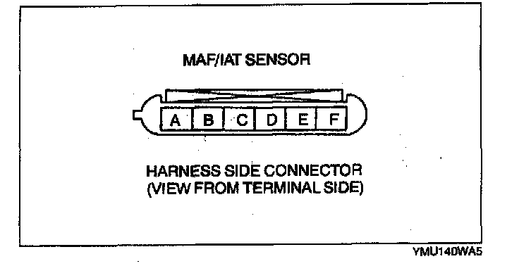 - MAF/IAT sensor terminal B harness-side and body ground MAF/IAT sensor terminal E (harness-side) and power supply MAF/IAT sensor terminal E harness-side and body ground