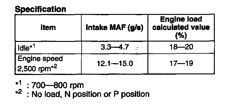 - If not as specified, perform the "MAF Sensor Circuit Open/Short Inspection".