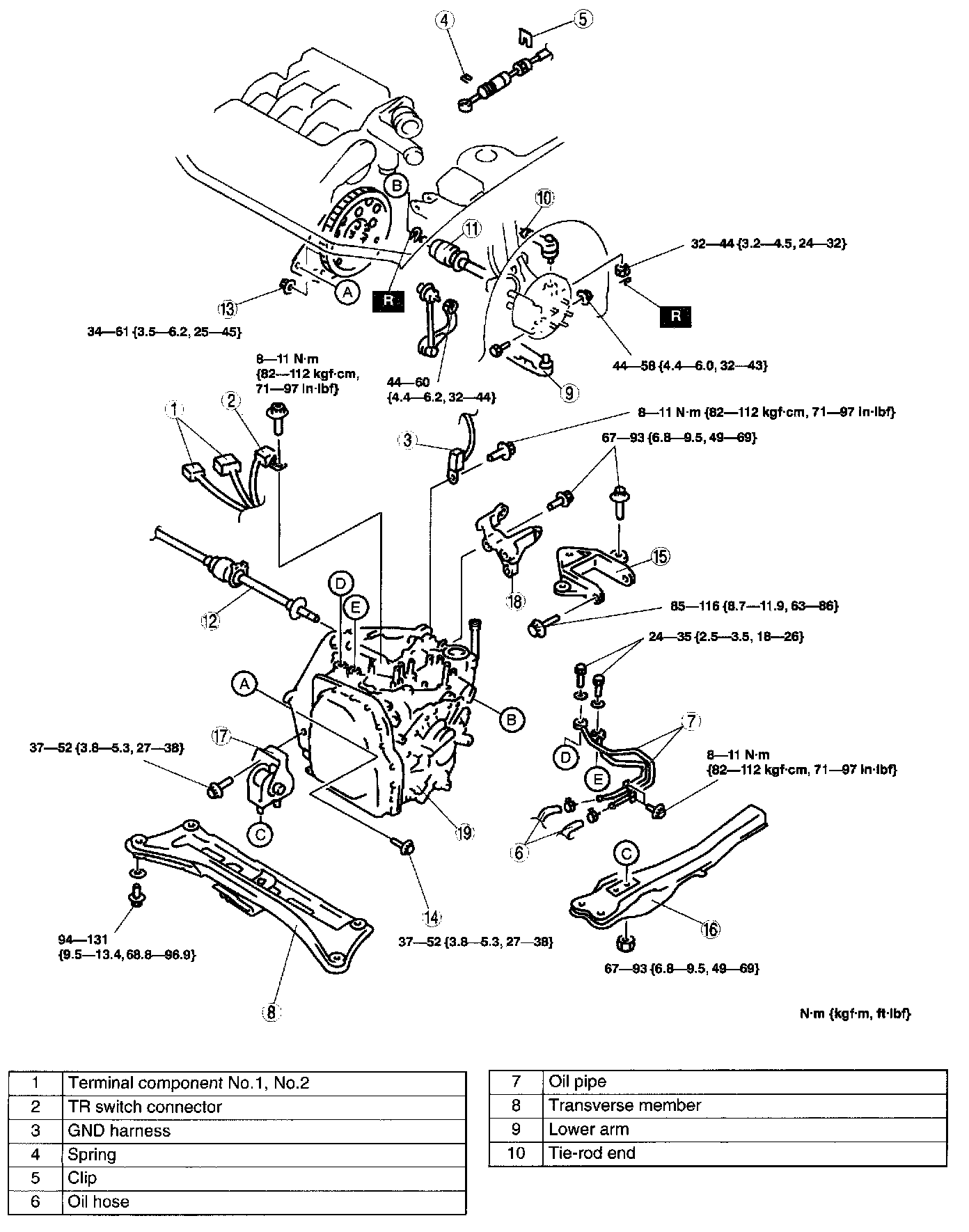 B: 67 - 93 Nm {6.8 - 9.5 kgf-cm, 50 - 68 ft. lbs.}