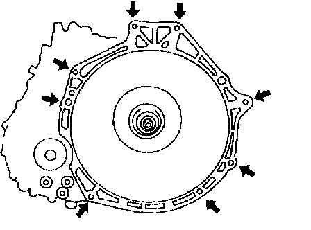 ^ Loosely and equally tighten the torque converter nuts, then further tighten them to the specified tightening torque.