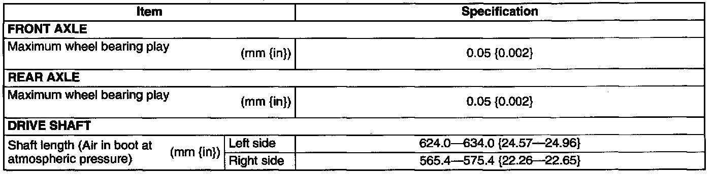 DRIVELINE/AXLE TECHNICAL DATA