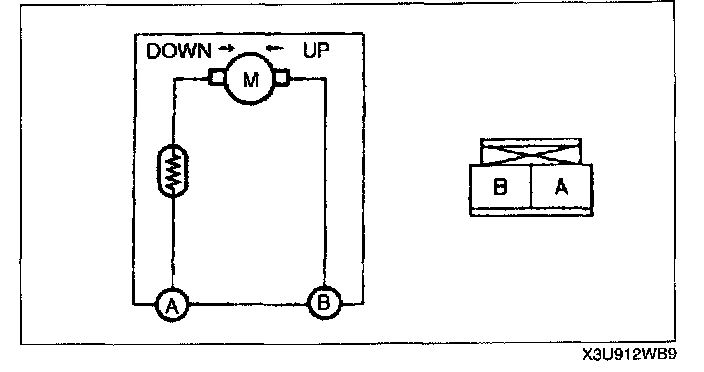 2. Apply battery positive voltage to the power window motor terminals and inspect the operation of the power window motor.