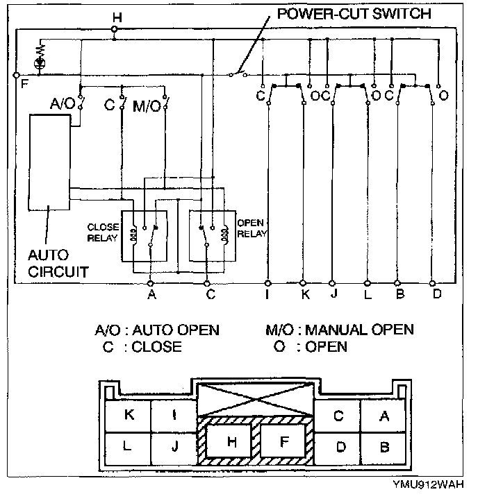 2. When inspecting the passenger's side and the rear, verify that the power-cut switch is at UNLOCK.