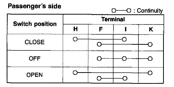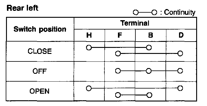 3. Inspect for continuity between the power window main switch terminals using an ohmmeter.