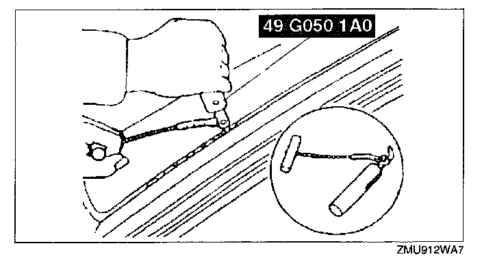 1. Make a hole through the sealant except fasteners from the inside of the vehicle using an awl.