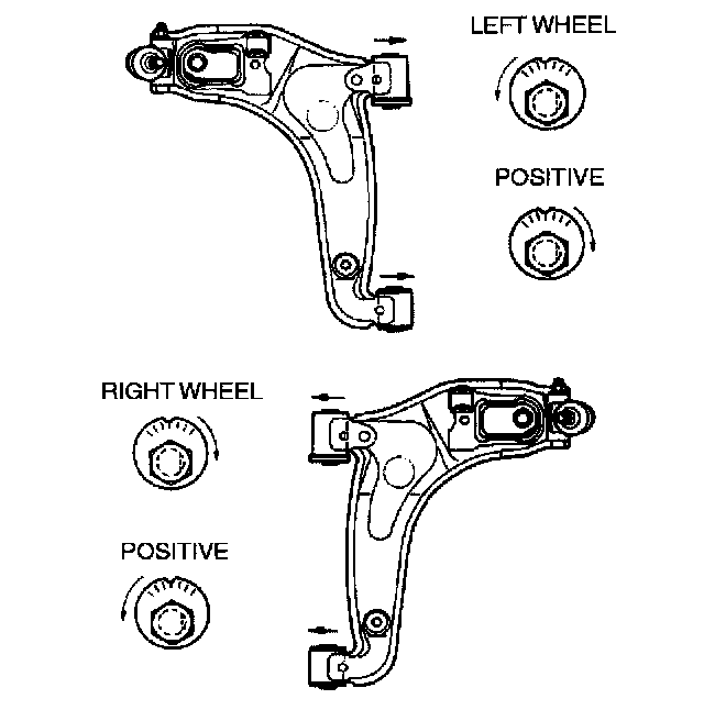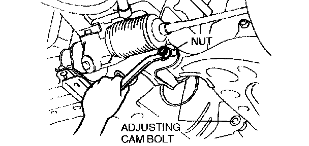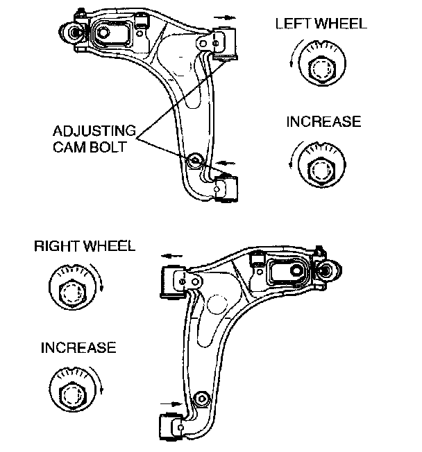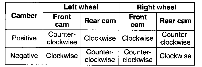 2. Turn the front and rear adjusting cam bolts the same amount in the opposite direction equally to provide the correct camber angle.