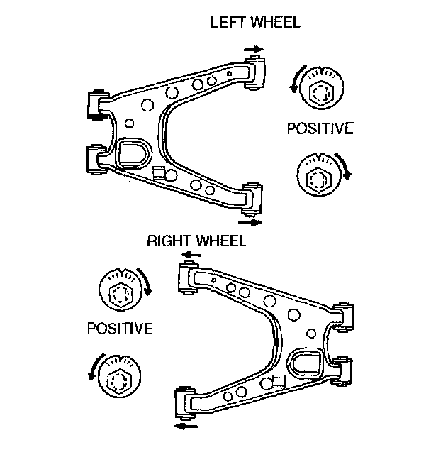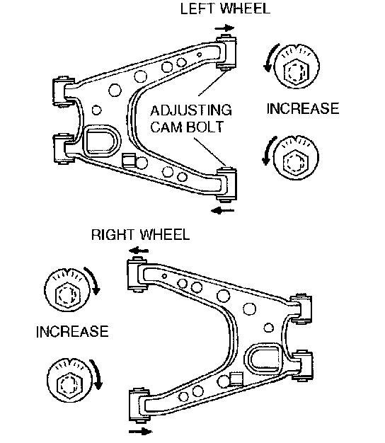 2. Turn the front and rear adjusting cam bolts the same amount in the opposite direction equally to provide the correct camber angle.