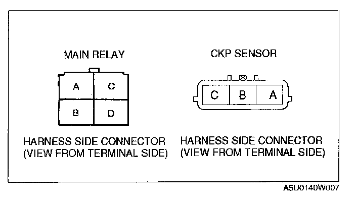 - CKP sensor connector terminal A and main relay terminal D through common connector to GND.