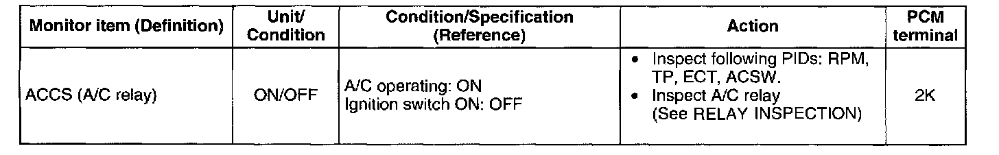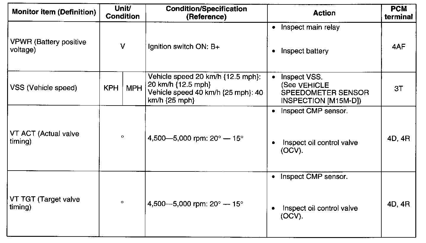 - If value is not within the specification, follow the instructions in ACTION column.