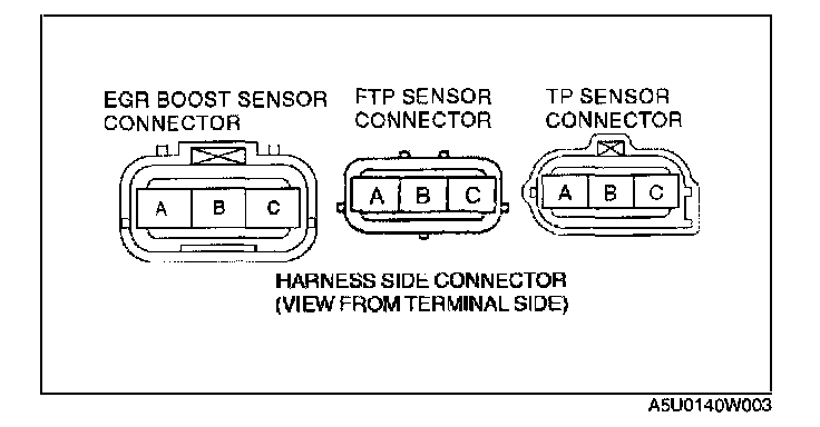 2. Disconnect the TP sensor connector, EGR boost sensor connector, and FTP sensor connector (to which Vref is applied).