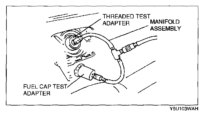 4. Connect the threaded test adapter (part of SST) to the manifold component and fuel-filler neck.
