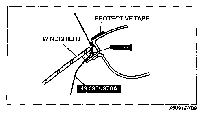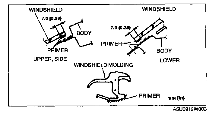 CAUTION: Keep the area free of dirt and grease, and do not touch the surface or the primer may not properly bond to the surface of the glass and body which may cause leaks to occur.