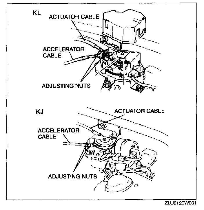 ACTUATOR CABLE ADJUSTMENT1. Turn the ignition switch to LOCK position.