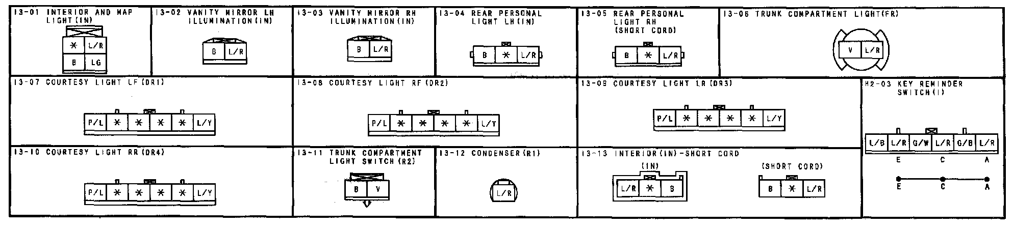 I-3 - Courtesy Light / Interior Light / Map Light / Rear Personal Light / Trunk Compartment Light / Vanity Mirror Illumination Connectors: