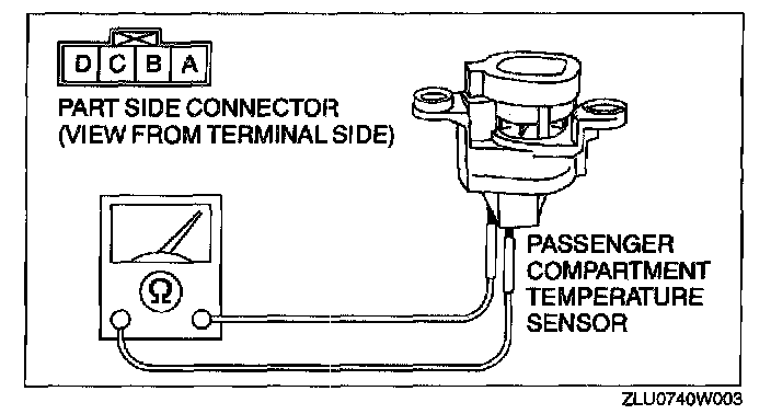 PASSENGER COMPARTMENT TEMPERATURE SENSOR INSPECTION1. Remove the passenger compartment temperature sensor.