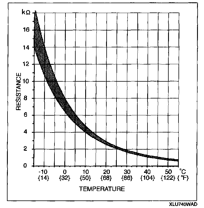 - If the resistance is not in the shaded zone indicated in the graph, replace the passenger compartment temperature sensor.