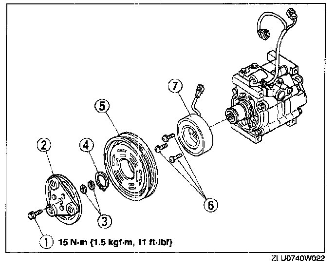 MAGNETIC CLUTCH DISASSEMBLY/ASSEMBLY1. Remove the A/C compressor.