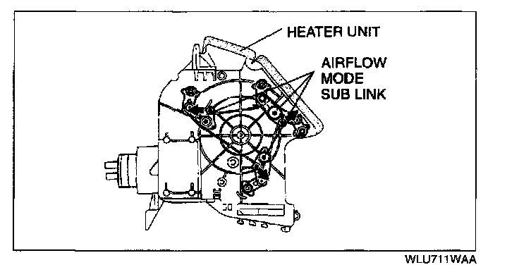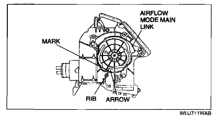 2. Set the mark of the airflow mode main link to the rib of the heater unit as shown in the figure.