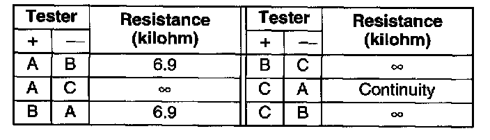 2. Verify that the resistance between the terminals of the power MOS FET connector (male) is as shown.