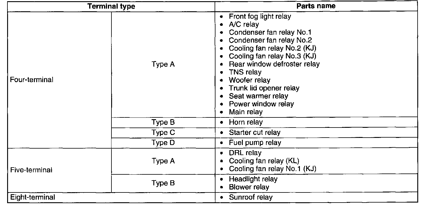 2. Inspect for continuity between the relay terminals using an ohmmeter.
