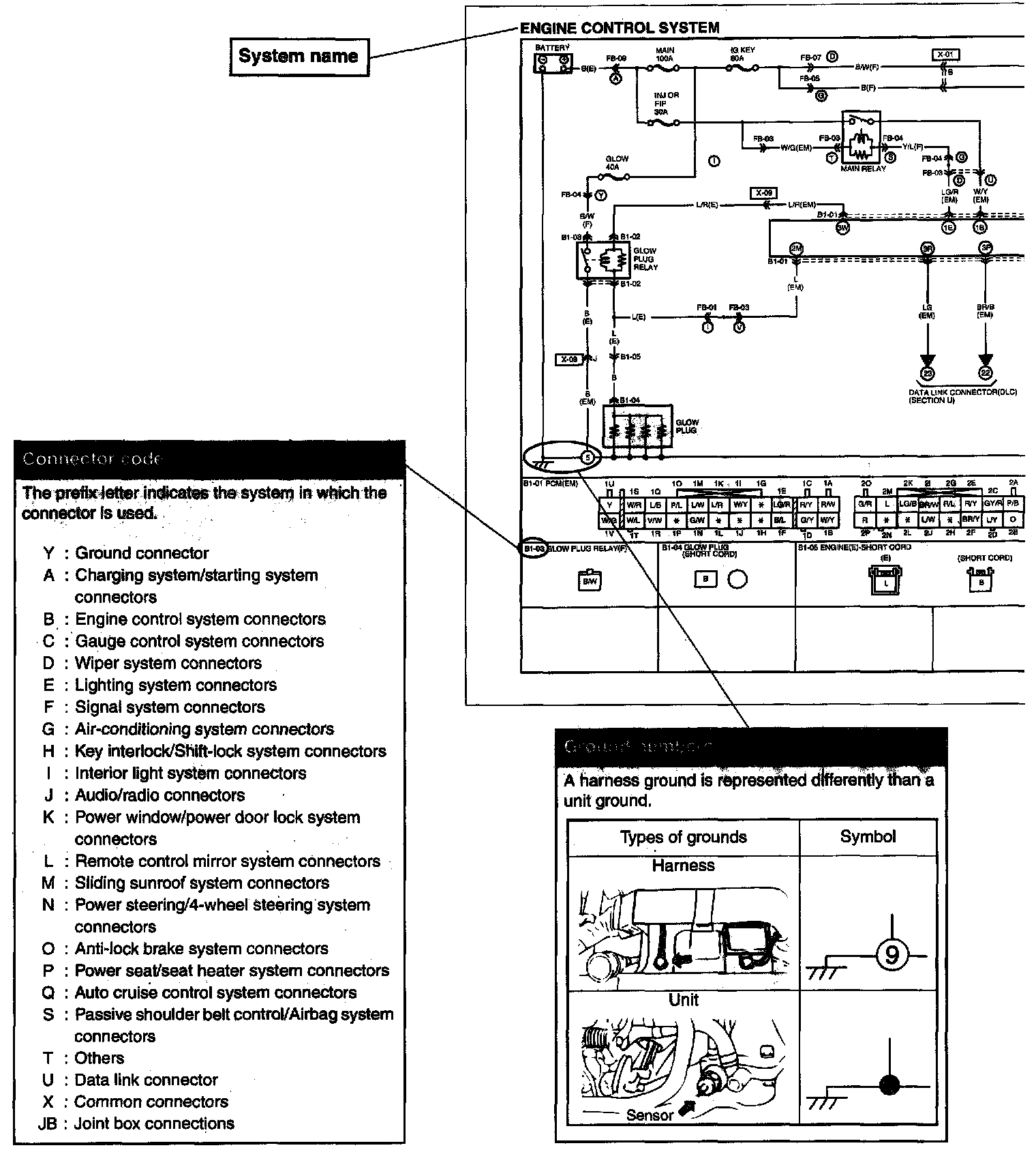 These diagrams show the circuits for each system, from the power supply to the. ground. The power supply side is on the upper part, the ground side on the lower part. The diagrams describe circuits with the ignition switch off.