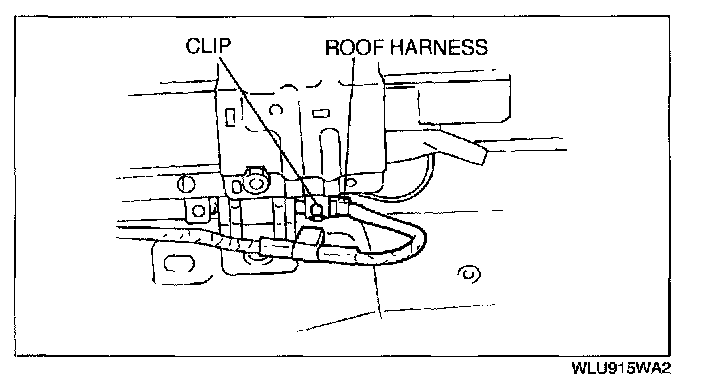 1. If a solar ventilation system is equipped, disconnect the roof harness and remove the clip from the bracket.