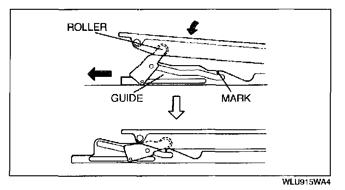 1. Move the guide backward and align the center of the roller with the mark written on the guide.