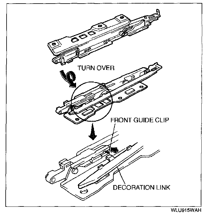 1. Set the decoration link under the front guide clip.