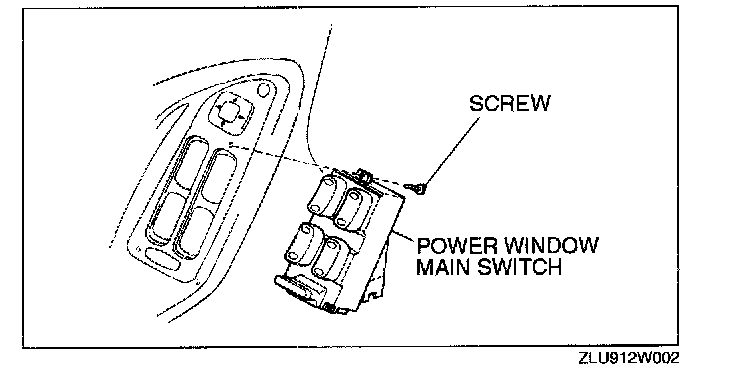 3. Remove the screws, then remove the power window main switch.
