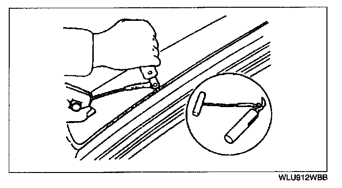 11. Working with another person, saw through the sealant around the edge of the glass. Use a long sawing action to spread the work over the whole length of wire to prevent it from breaking. Make sure the wire does not rub on the body.